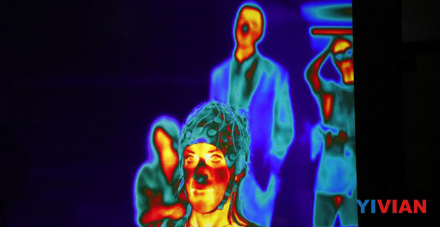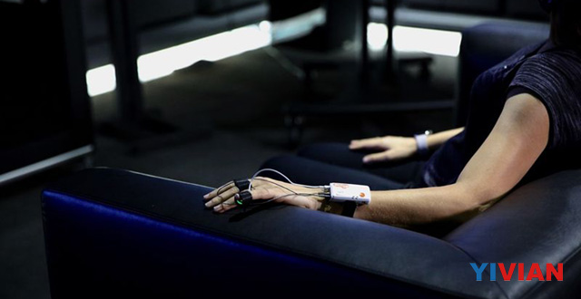 房间中有三个屏幕wepoker官方版玩法,扬声器至少有十几个。其中一个显示屏会向坐在沙发上的女性播放一系列的视频;另外两个屏幕会实时显示她的反应数据。左边屏幕是热成像,心率则在右边显示。